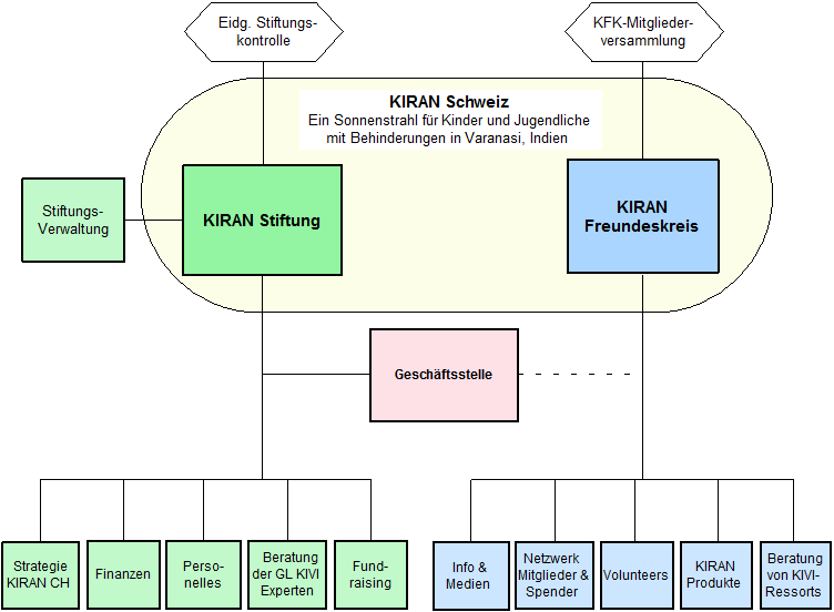 Die Geschäftsstelle ist dem KIRAN Stiftungsrat unterstellt und erledigt administrative Aufgaben.